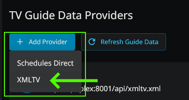 Once you have entered your server's URL and port, you will have to add the XMLTV Guide.