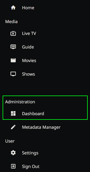 To see if your channels and settings were applied, go back to your main Jellyfin page by selecting the Home icon in the upper left with your server's name.