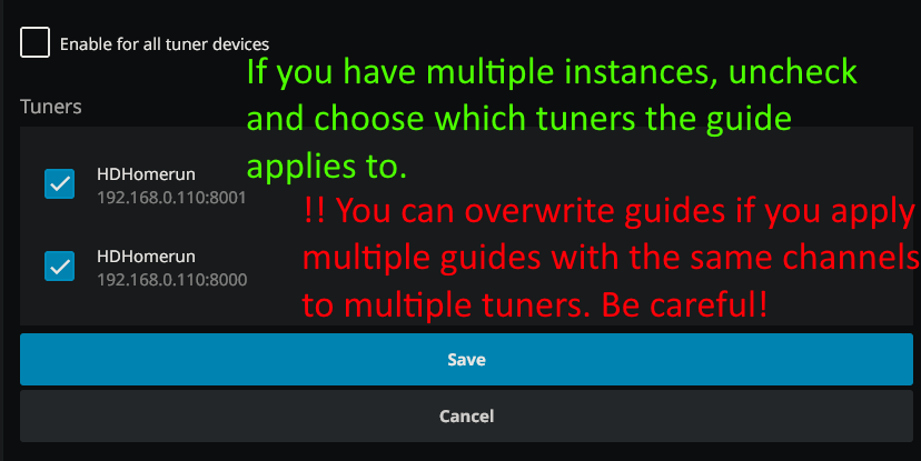 If you have more than one instance, you can uncheck this and then apply this guide to only the tuners you select.