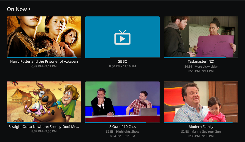 From here, you should see all shows that are playing on your channels under the Programs tab, or you can choose to see individual channels or guides from the other tabs.