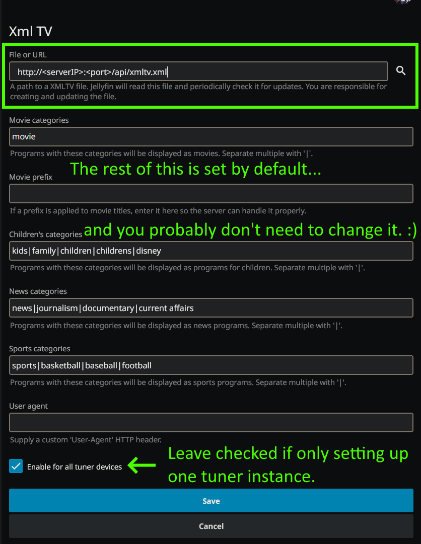 If you only have one instance of Tunarr running, you can leave the "Enable for all tuner devices" checked.